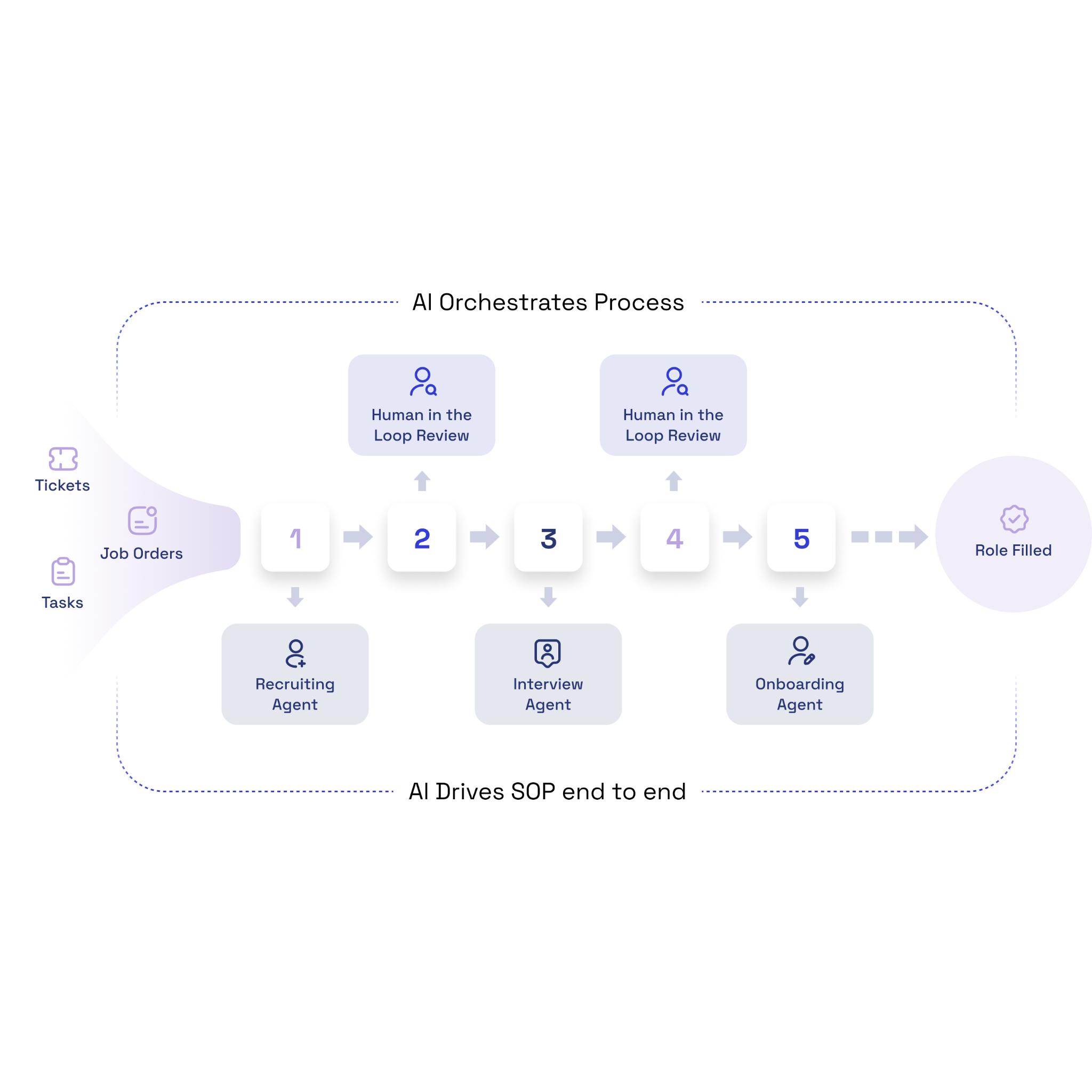 Our integrated orchestration platform coordinates the work between AI agents and human experts